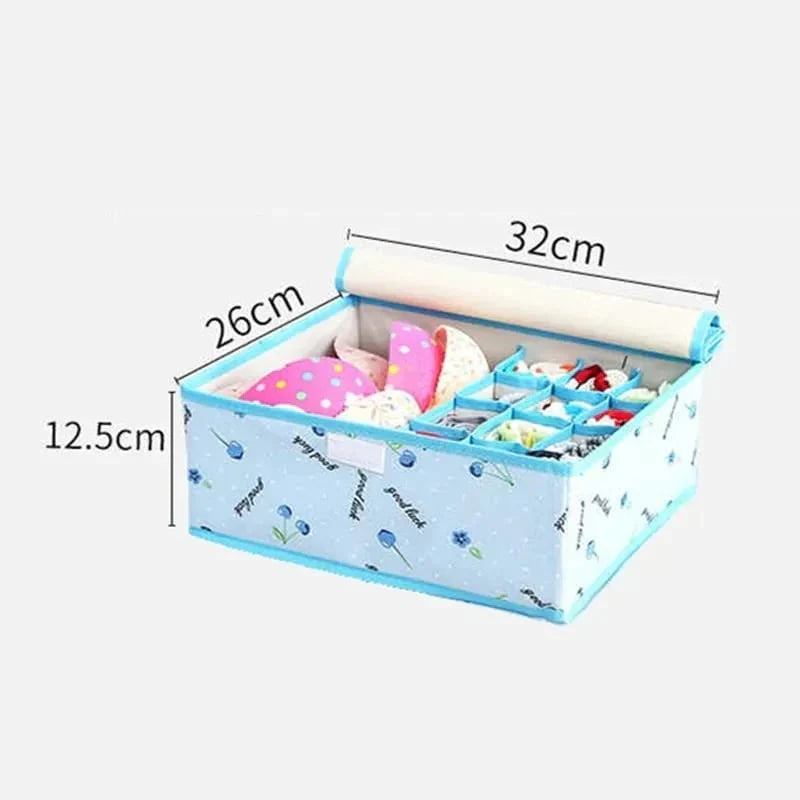 • Useful to organize bras, panties, vests, underwear, ties, and other small garments There is also a lid to protect undergarments from dust. The foldable design makes the organizer easy to carry for a vacation.