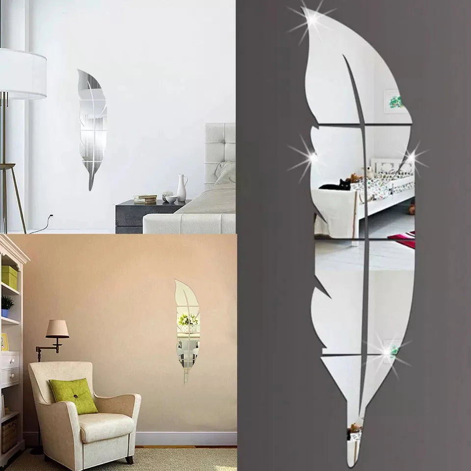 3D MIRROR WALL STICKERS FEATHER PLUME VINYL DECAL STICKER
