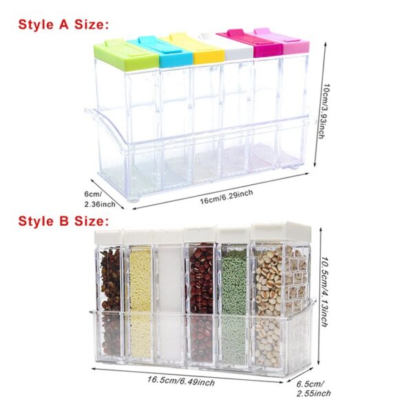 Clear Seasoning Rack Spice Pots – 6 Piece PS Seasoning Box – 6 Cruet With Cover Don’t worry that the salt or pepper dirty your kitchen counter. Don’t tired the surplus condiments nowhere to please. Our seasoning boxes can help you to solve the trouble. Performance: