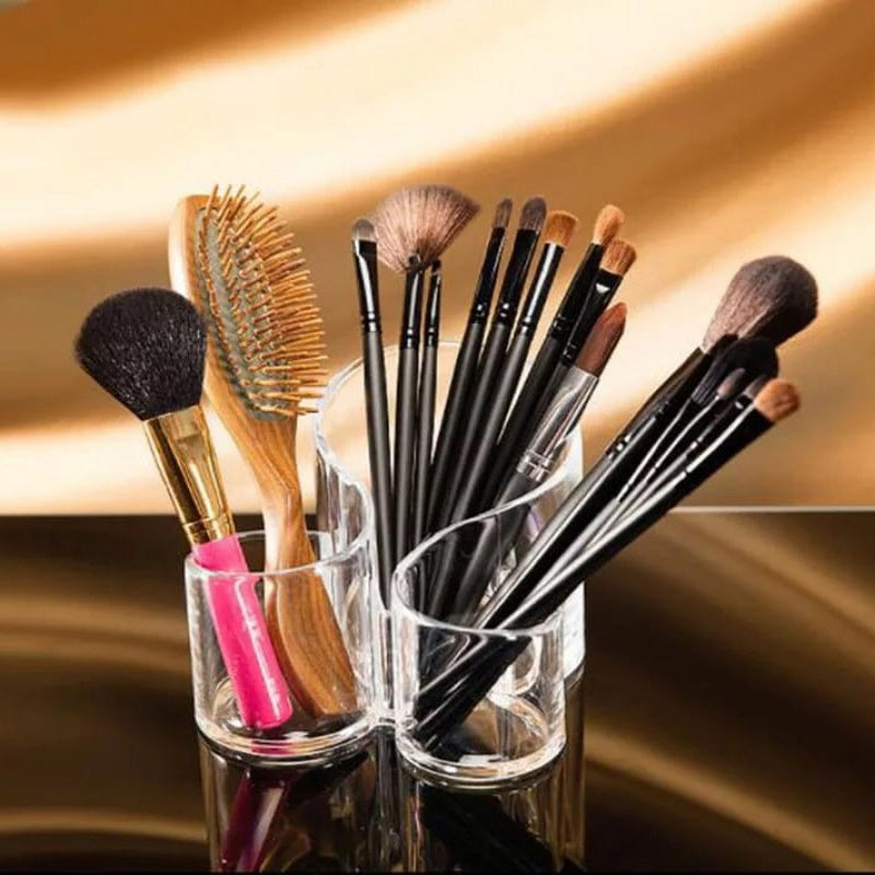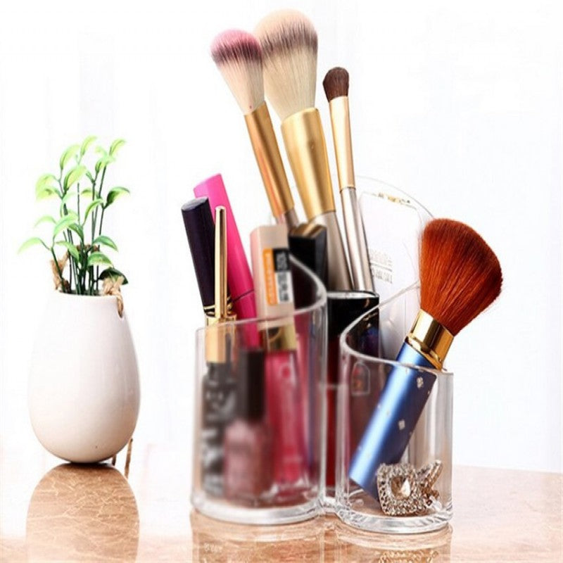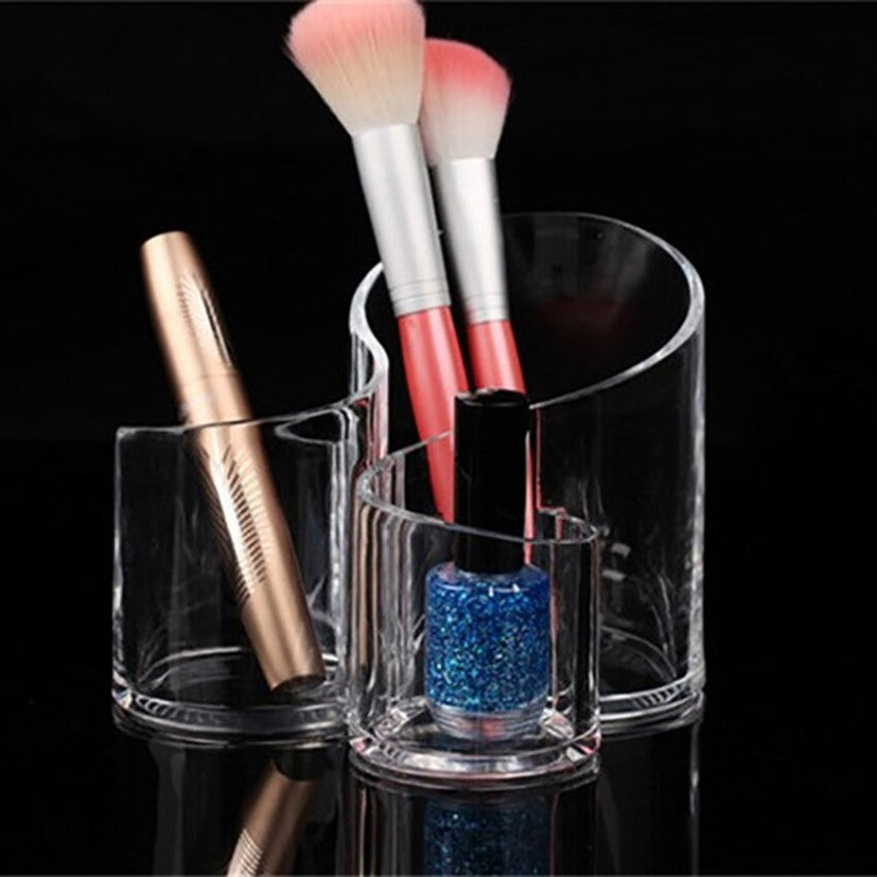 Acrylic 3 Compartment Cosmetic Brush Holder