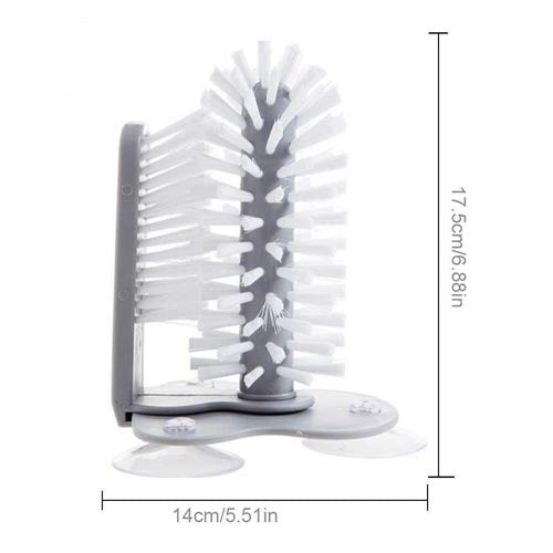 • 3 SUCKERS: There is three suction cups at the brush bottom, standing glass cleaner can be attached to the wall table, or attaches to the bottom of sink, just slide glassware between the two sets of bristles, convenient to use and cleaning.