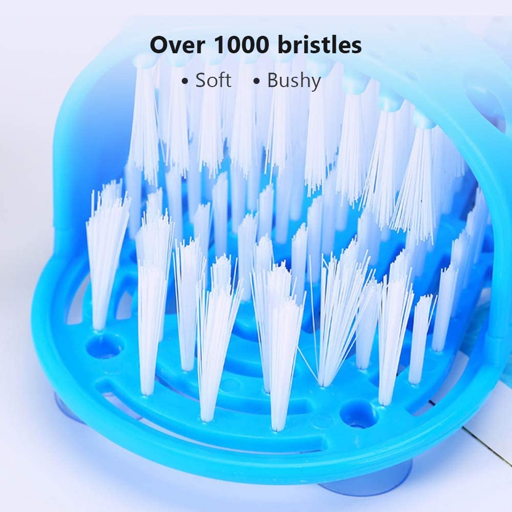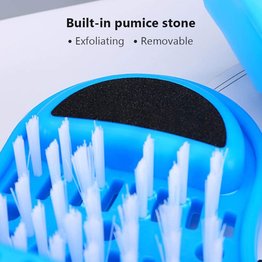 • ⦁ The foot scrubber is a shoe-like object with bristles on top and bottom and an upgraded-version pumice stone at the heel that gently cleans and exfoliates your feet