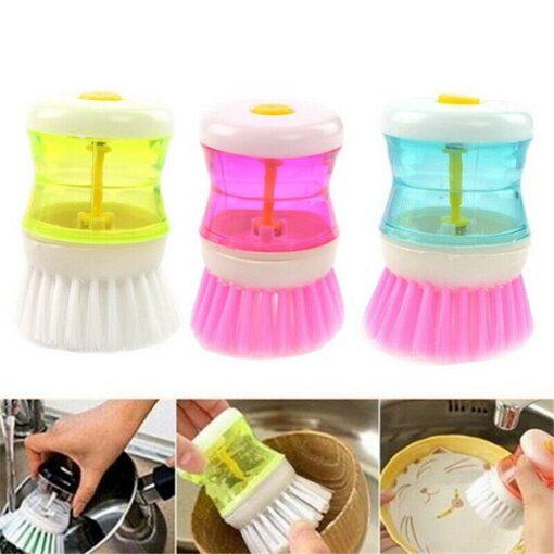 Liquid Soap Dishwasher Brush Loaded Button to Release Washing up Liquid to Tackle Stubborn Grease and Grime. Makes light work of washing dishes.