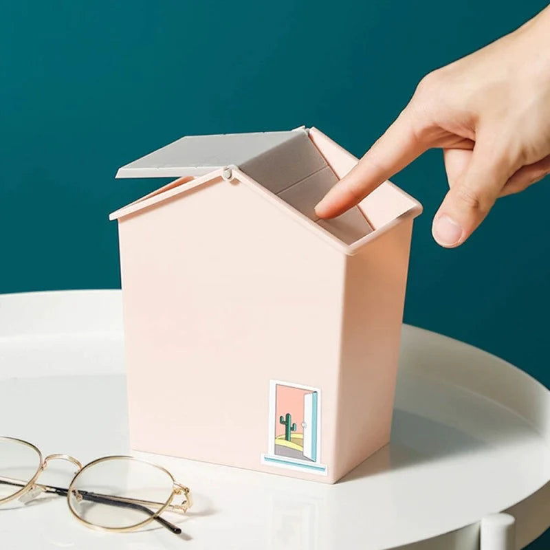 • Mini House Shape Desktop Trash Can Desk Garbage Organizer Home Car Office Kitchen Storage Bucket Plastic Paper Basket Nordic Tiny Waste Bin