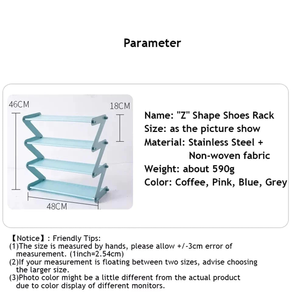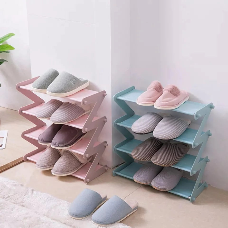 Plastic Shoe Rack 4-Shelf Organizer - Steel Rods & Fabric Layer
