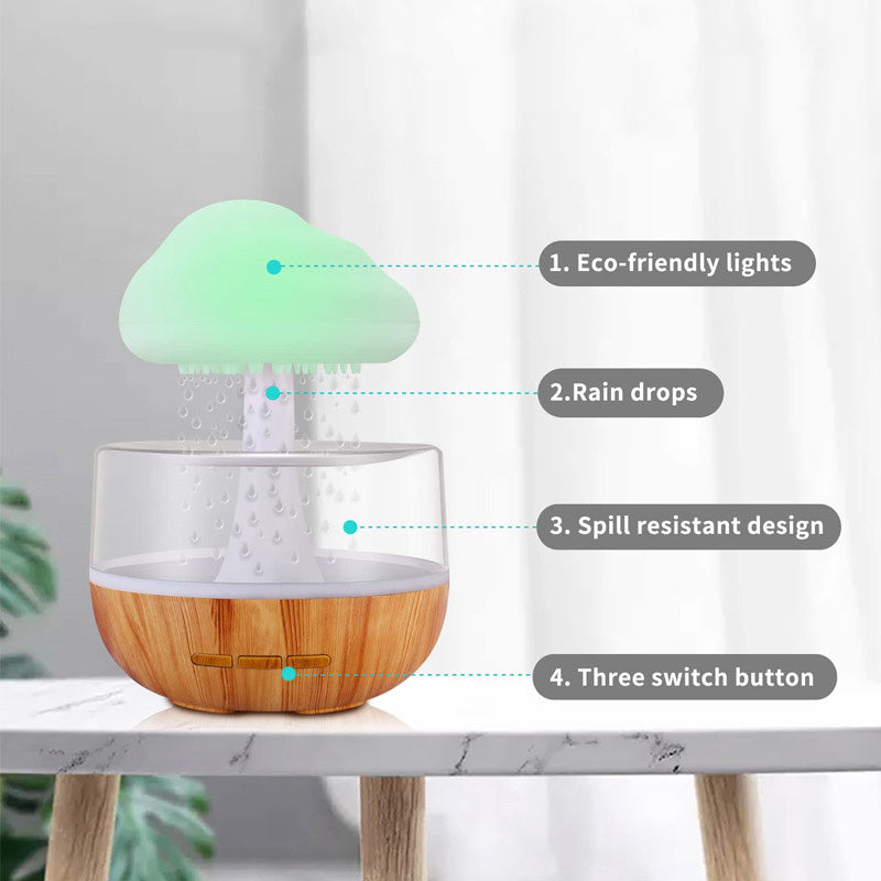 - This rain cloud humidifier water drip can make realistic and soothing raindrop sounds, bringing you to the embrace of nature. Create a clam and relaxing ambience for releasing fatigue and easy falling asleep.