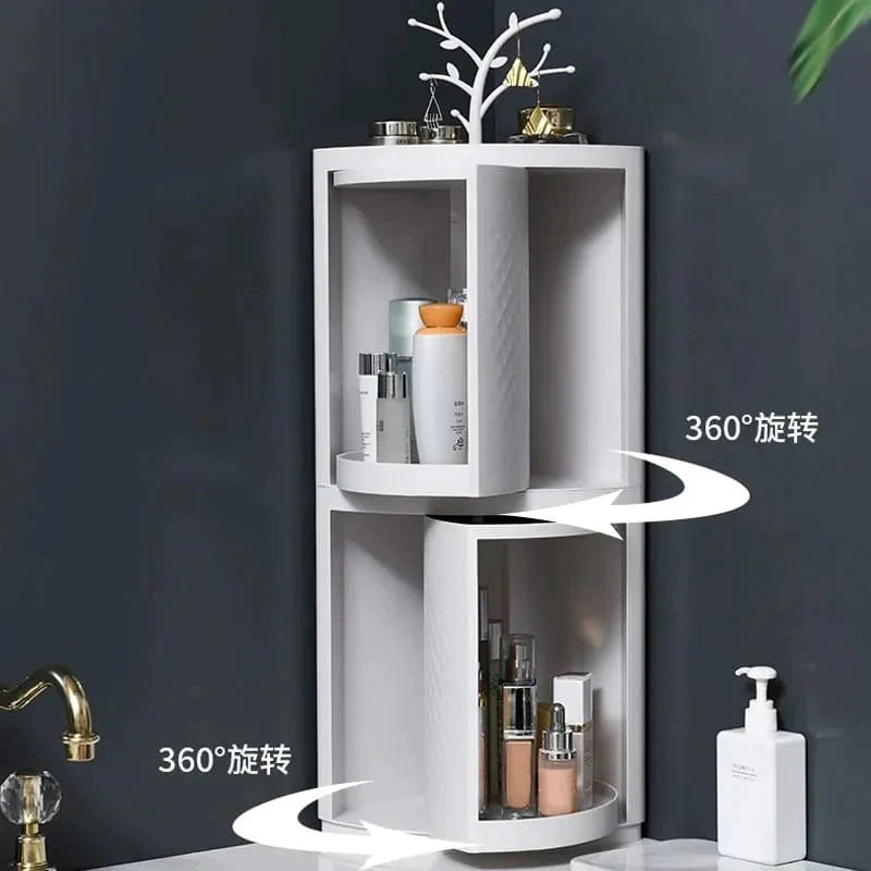 • The rotating bathroom rack is covered, which can save the stored items from being wet by water, effectively solving your troubles.