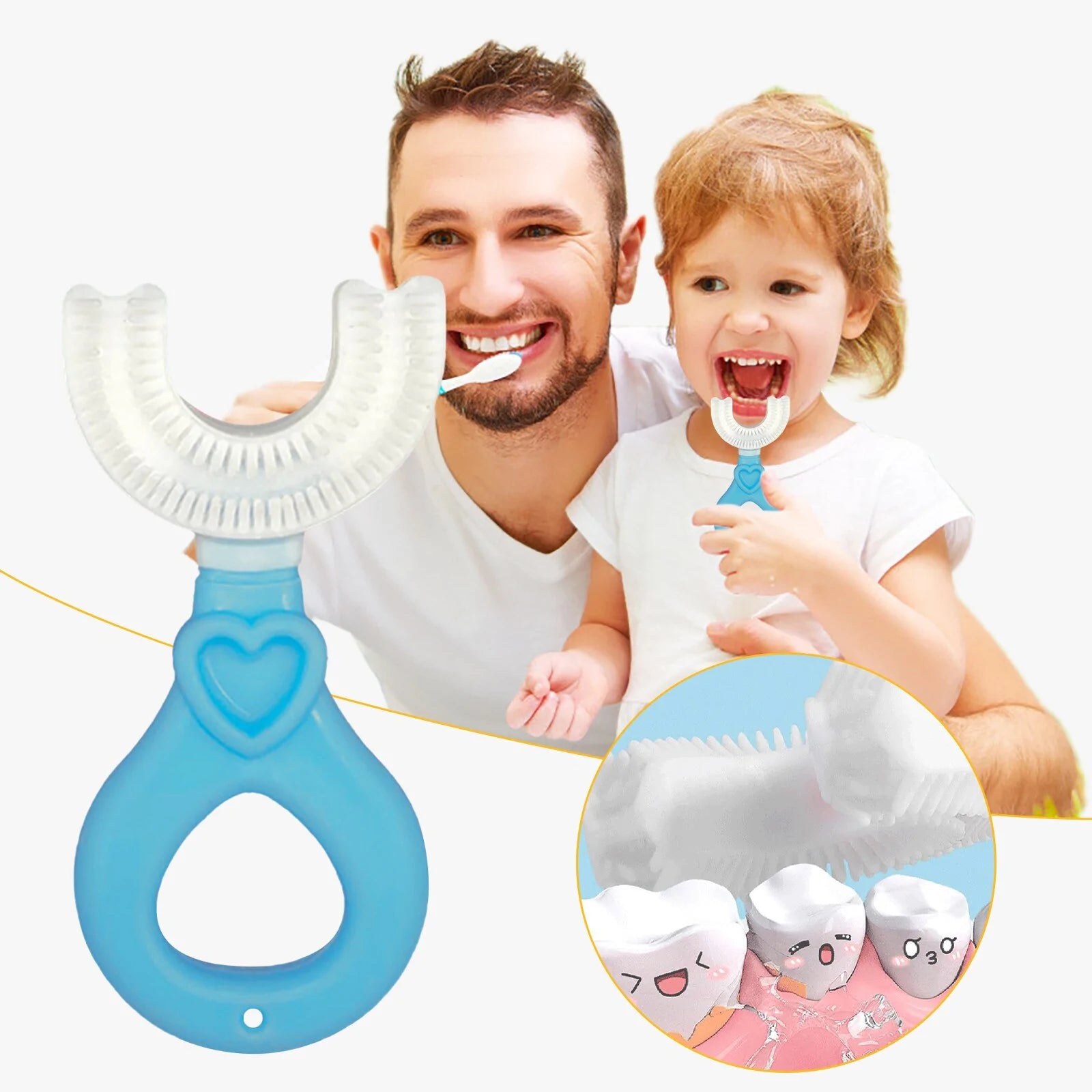 • Teeth brush: With a U-shaped toothbrush, brushing your kid's teeth is no longer a nightmare.