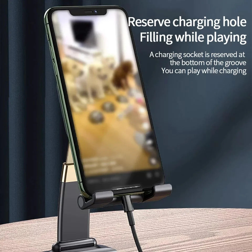 • ANTI-SLIP DESIGN & USER FRIENDLY DESIGN: The pad back and the bottom of this cell phone stand are fully covered by anti-skid silicone, which can provide maximum protection for your device from any scratches and slide. A humanized charging port is reserved, you can play your device while charging, and the depth of groove fits exactly with the phone and does not block the screen, You can freely use it to watch movies or chat with family and friends.