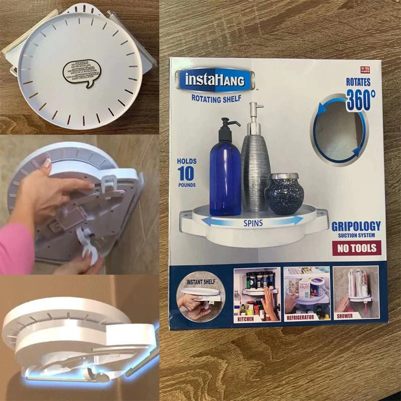 • ROTATE 360°: The Instahang spin shelf rotates a full 360°, giving you easy access to everything you place on the circular turntable.