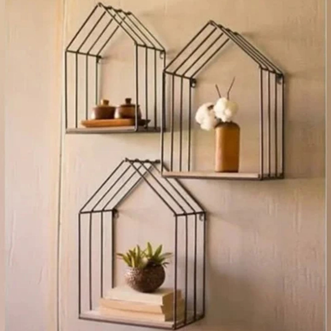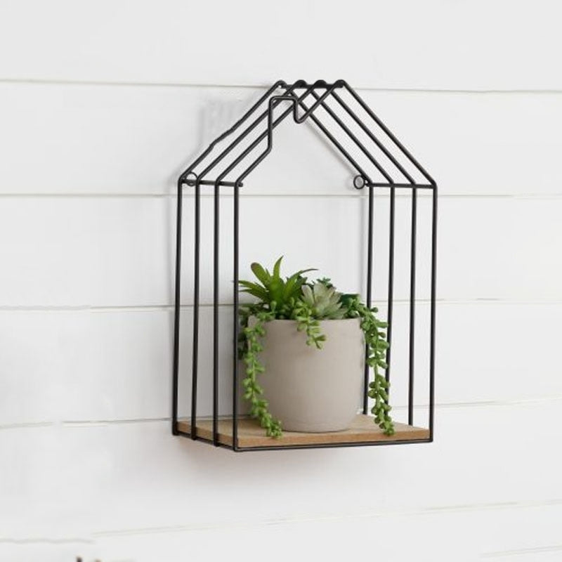 • This wall shelf is designed to resemble a hut or a small house, adding a charming and rustic touch to any room.